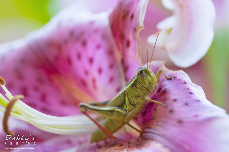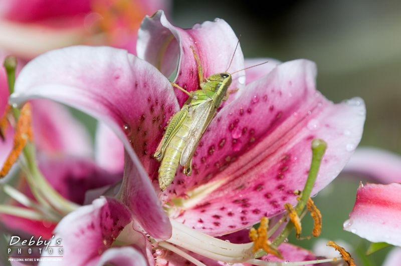 Comments: 3708 Grasshopper peeking over Stargazer Lily