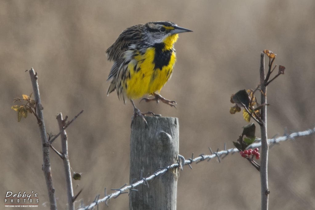 FL3140 Meadowlark on Barbed Wire