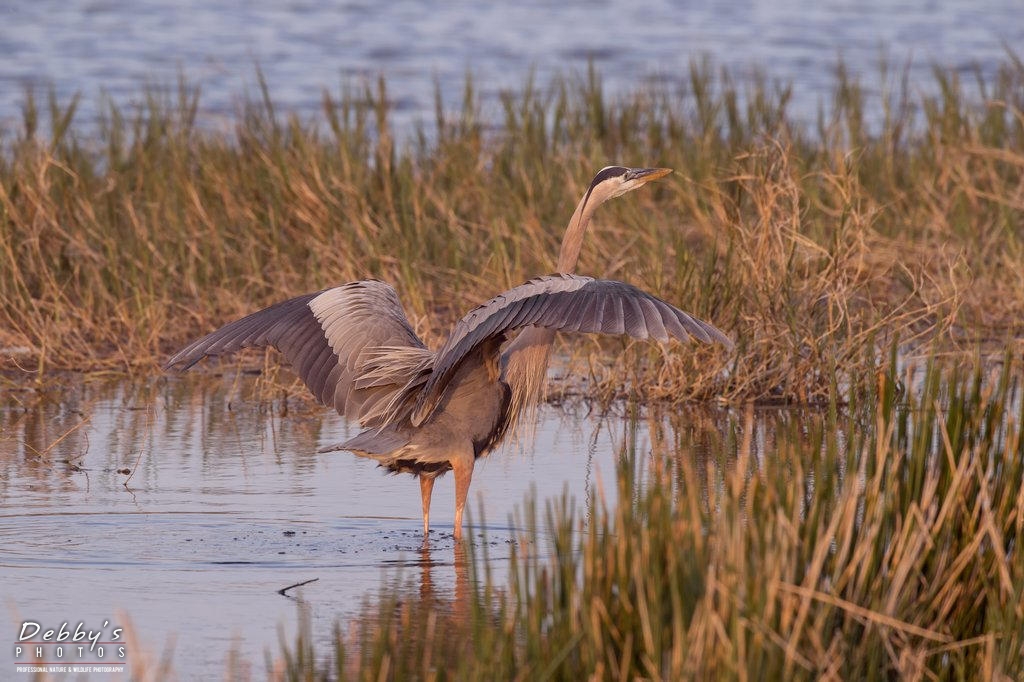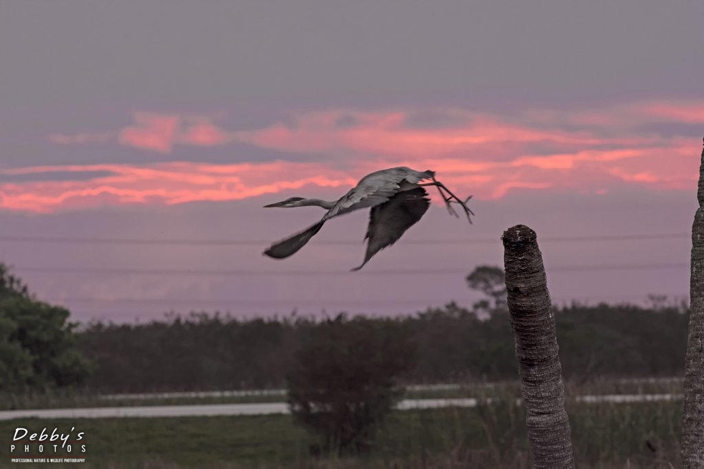 FL3426 Great Blue Heron takeoff at sunrise
