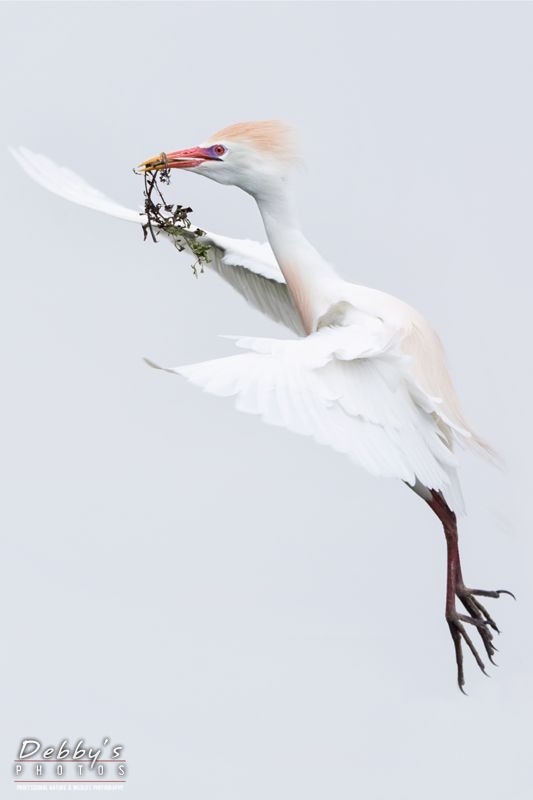 FL4455 Cattle Egret in Flight with Branch for Nest