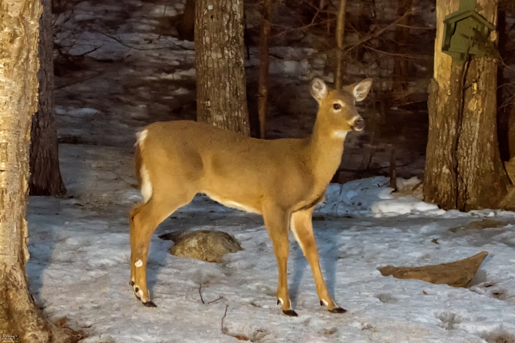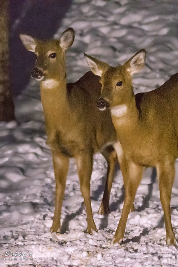 Purchase options: 7110 Gray Fox and Deer at Night in the Snow
