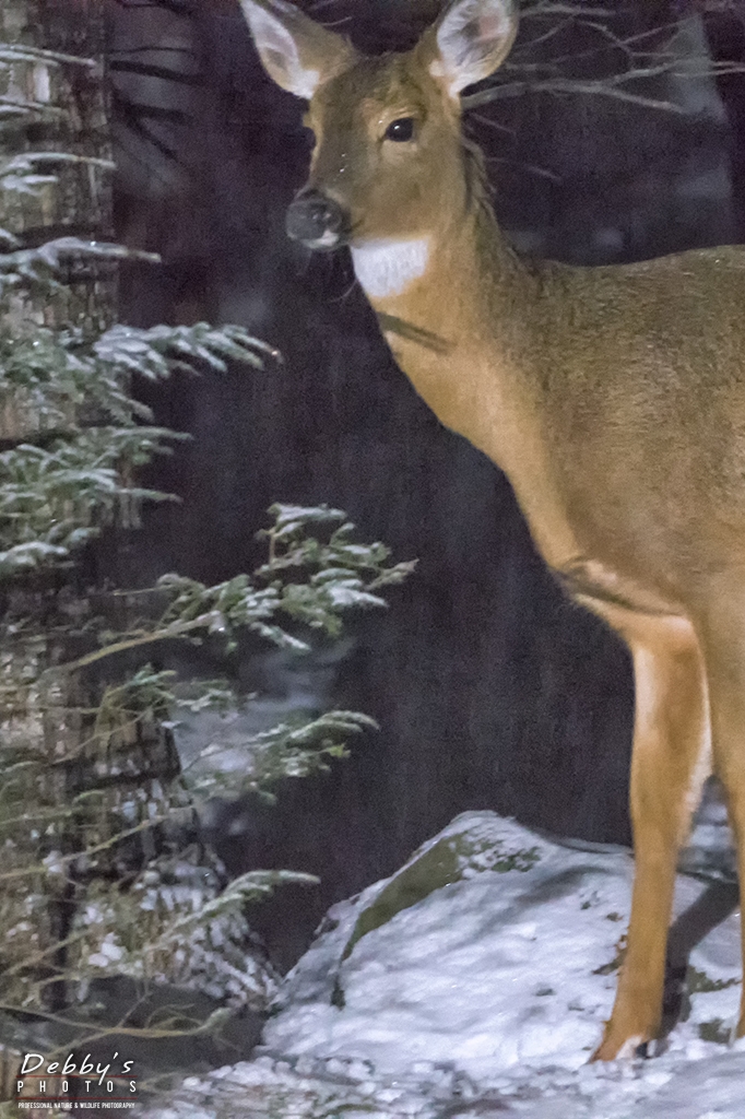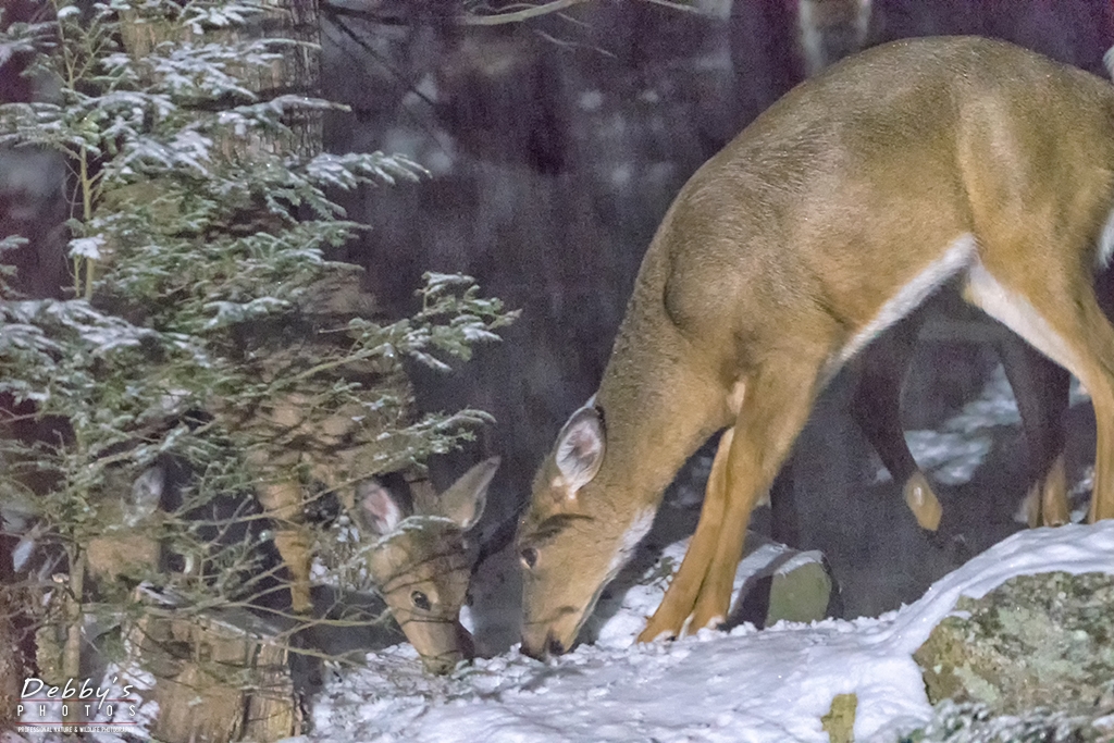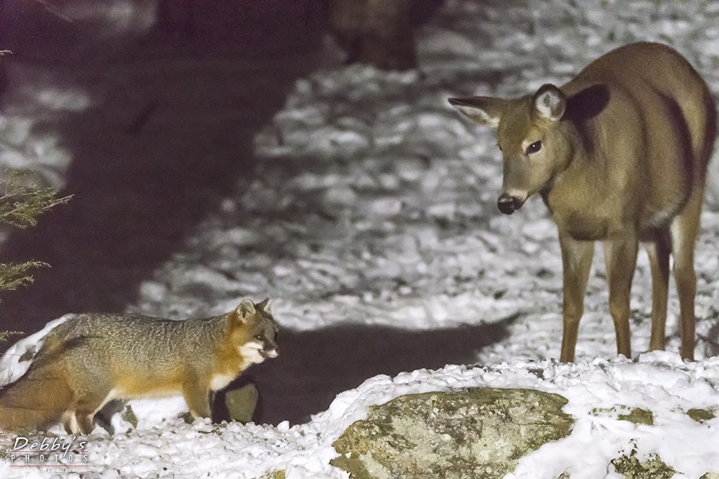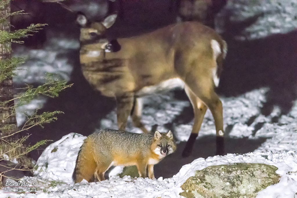 Share: 7110 Gray Fox and Deer at Night in the Snow