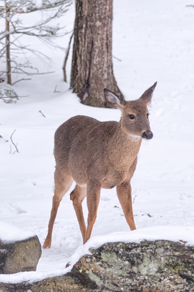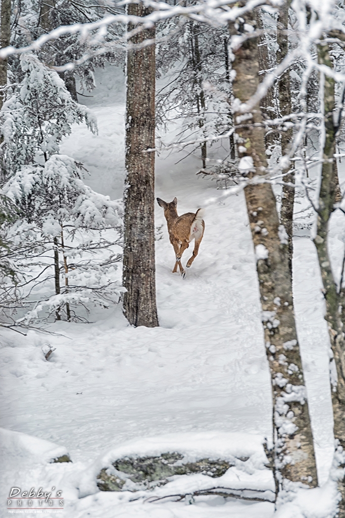 Purchase options: 7166 Deer Running Up Snowy Trail