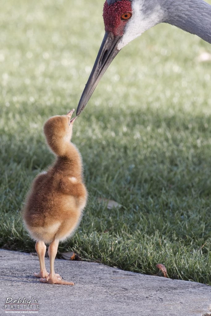 Purchase options: FL3219 Sandhill Crane feeding chick