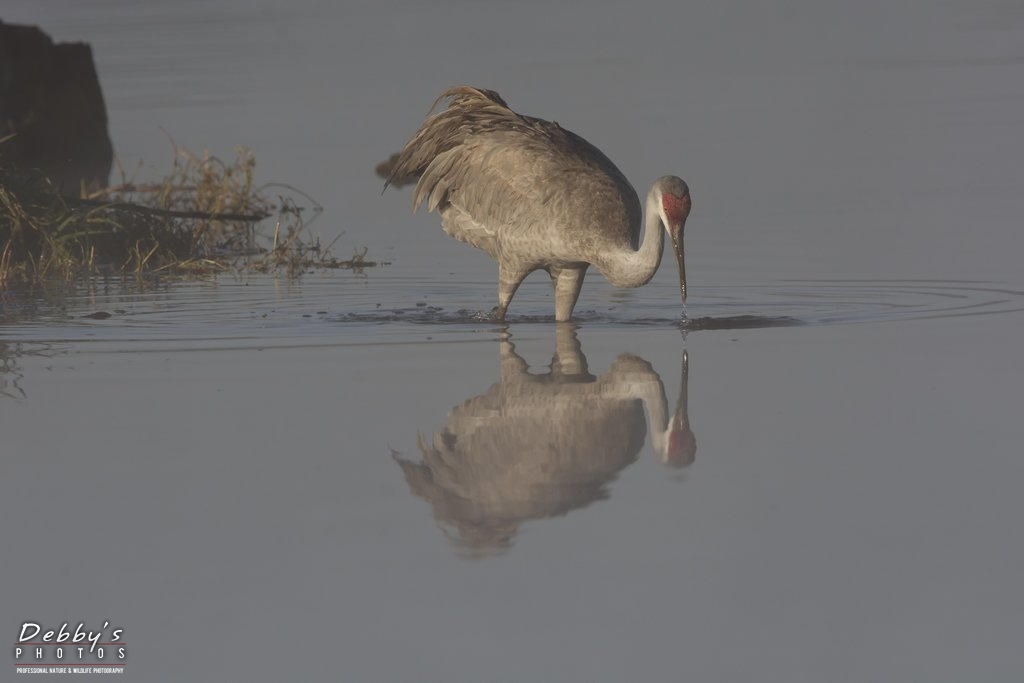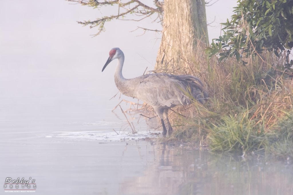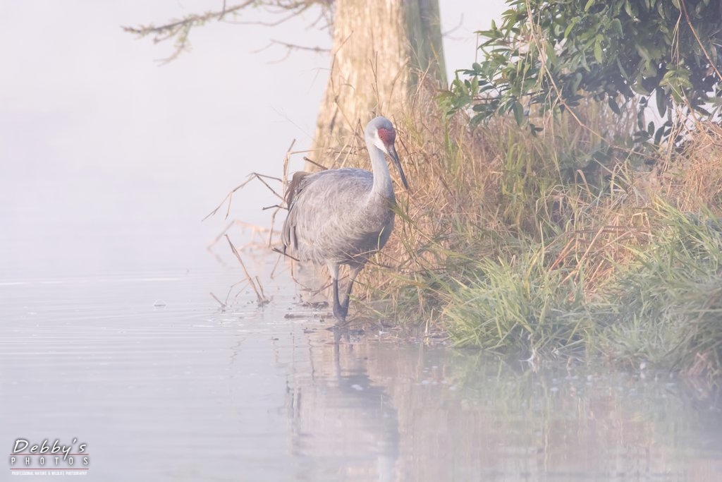 Share: FL3237 Sandhill Crane at the edge of the island in fog