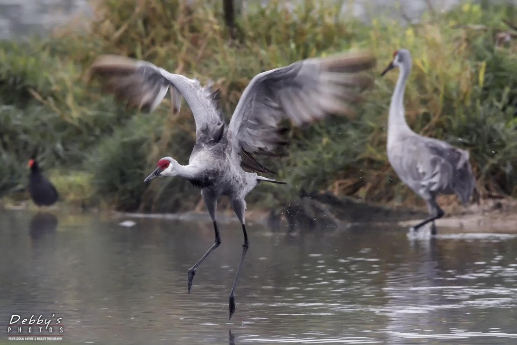 FL3363 Sandhill Cranes getting ready to cross the pond (2)