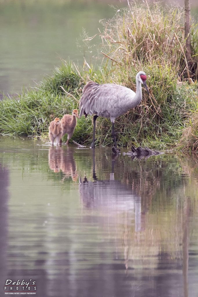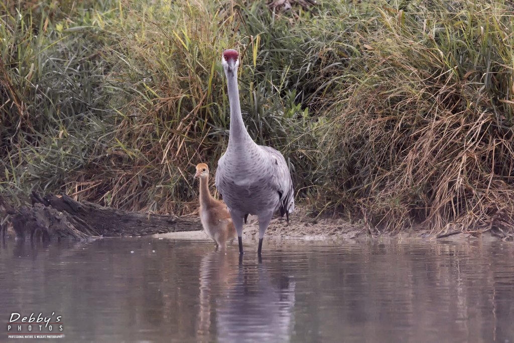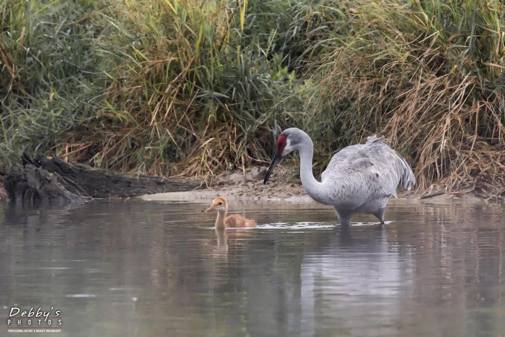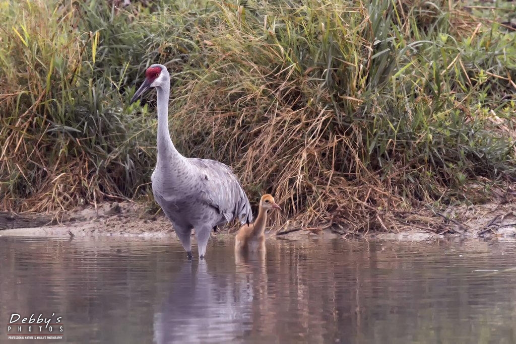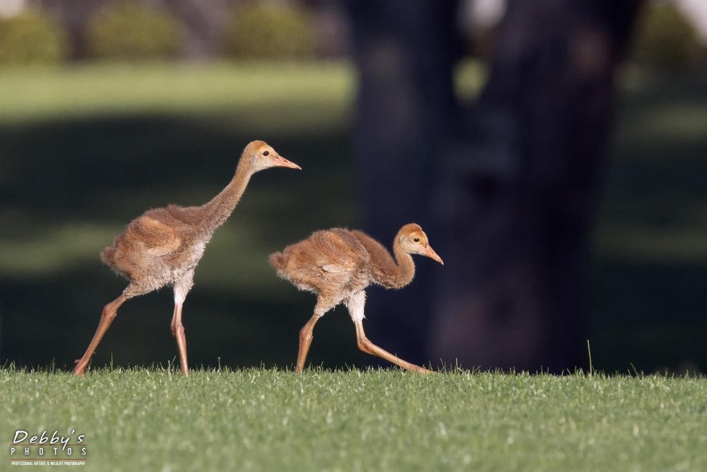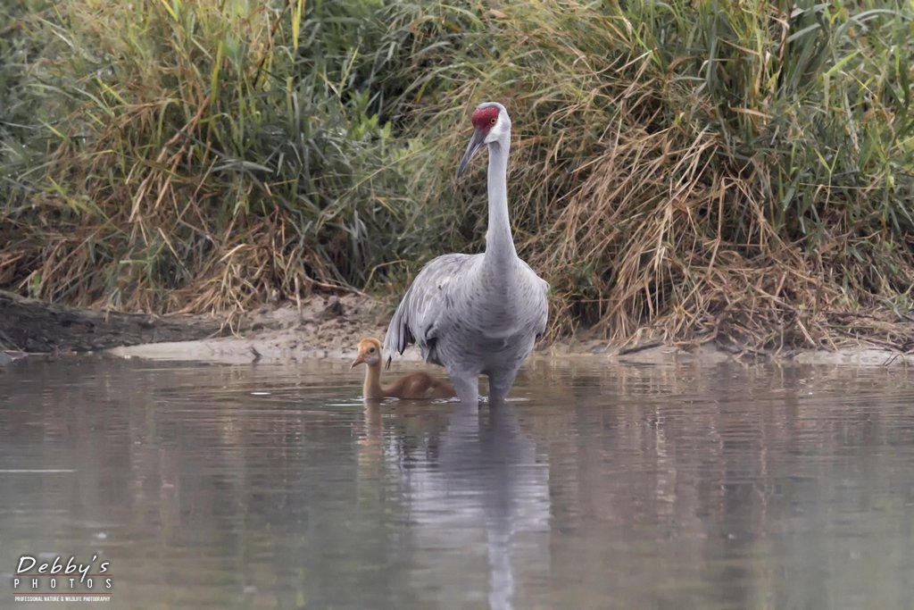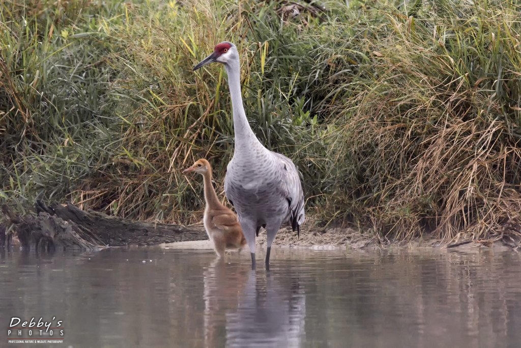 Share: FL3385 Sandhill Crane Colts after crossing the pond; growing like weeds