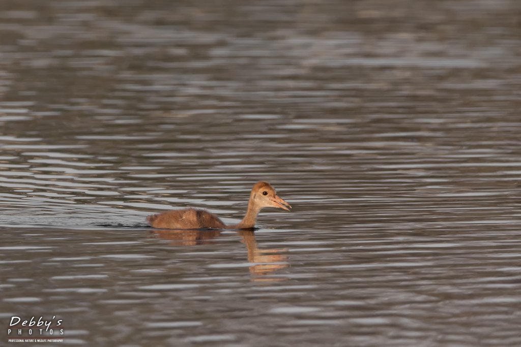 Share: FL3375 Sandhill Crane Colt swimming across the pond all by himself